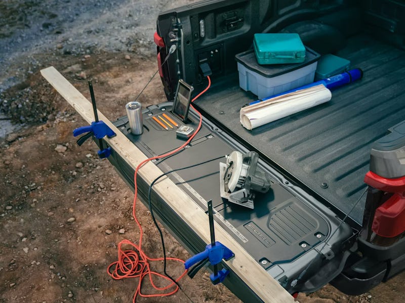 Starting up the reverse charging process is as easy as adding an adapter to your F-150’s charging cable and plugging it into a covert outlet in the back of the truck bed. The exact number of miles per hour the F-150 will be able to provide depends on the receiving vehicle’s specs; the Mustang Mach-E can charge up to 20 miles per hour at the L2 level, for example, but an all-electric cargo van might only get 10 miles per hour.
