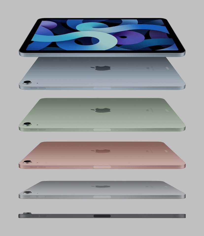 The iPad Air 4 will be available starting next month in five color variations including silver, space gray, rose gold, green, and sky blue.