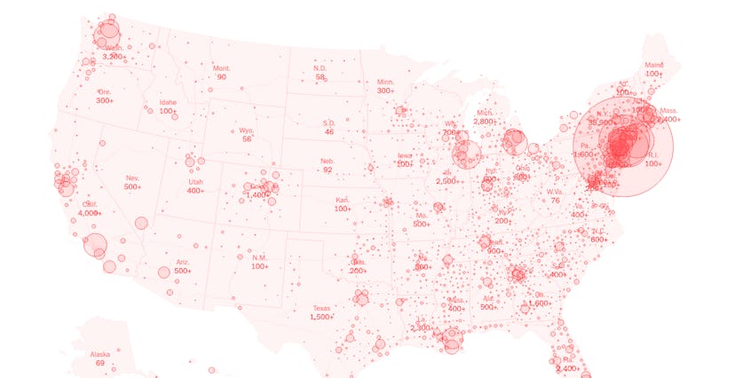 Do some digging and you might notice what seem to be discrepensies, like a lack of coronavirus-related death figures for parts of New York. That's likely down the the severe lack of available testing in the state, and will probably be rectified over time as the available data improves.