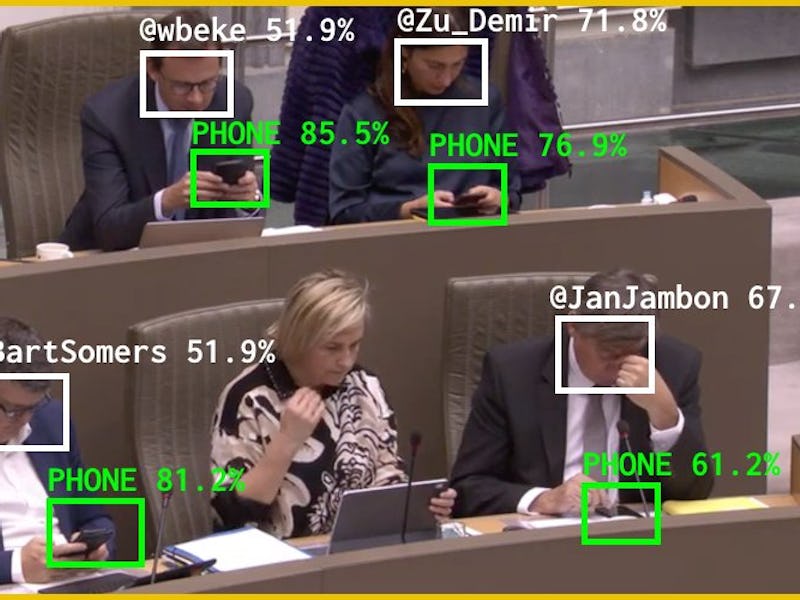 Depoorter’s project, which he has named “The Flemish Scrollers,” targets Belgian politicians in particular. Every meeting of the Flemish government is live-streamed via YouTube — so Depoorter realized he could use these streams to automatically tag distracted politicians (h/t TheNextWeb).