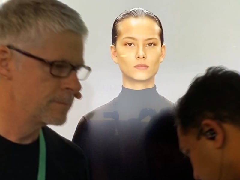 Later on, Neon lead Pranav Mistry took to the stage and proclaimed, "Neon is just a stopover to the next reality." Like Mistry's Twitter feed, there was quite a bit of lead up to his demo spent talking philosophy instead of showing the real-fake people who may or may not be an actual, functioning product. Despite some early demo sound issues, Pranav was able to show a comparison from 2018 of early experiments of a live talking head and a "computed" version of the same person. They look almost identical, and Pranav was quick to point out that even in the early days of the Neon project, the team was getting very realistic results, especially on details like clothing. "This never happened. This man never wore this shirt," he said.