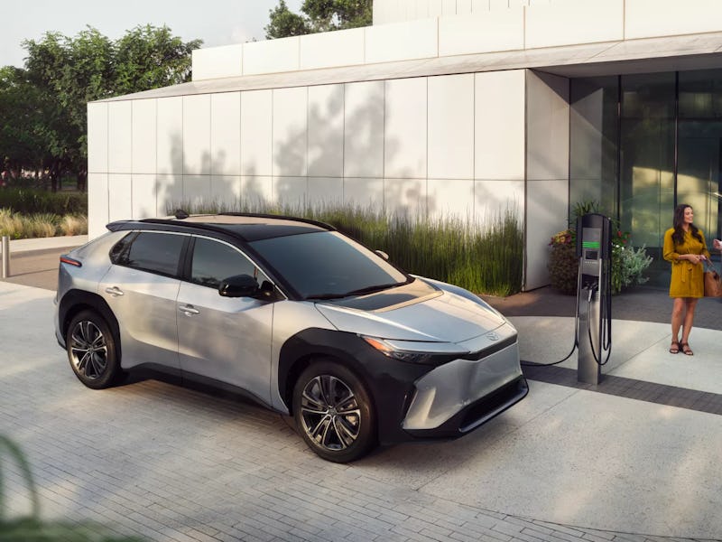 The front-wheel-drive version of the bZ4X will be able to transport you approximately 250 miles before needing a recharge, Toyota says. That’s about 100 miles less than similar offerings from Tesla, no doubt the SUV’s most intense competition. Toyota hasn’t provided an estimated range for the all-wheel-drive model, though we’d expect it to get something like 50 miles less per charge, based on the range of Subaru’s Solterra, the bZ4X’s closest cousin.