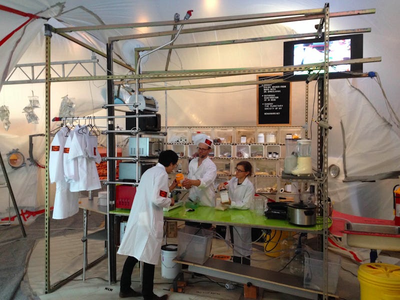 While waiting for Zedek and Kapplow to work their crickety Martian magic, I got to chat with Neilson. She and co-organizer Douglas Paulson — another New York-based artist — began the Menu for Mars on planet Earth as a supper club at different spots around the city. “We met at different restaurants that serve food from a country that has an active space program, and informally discussed what food might be like with someone with relevant expertise like astrophysicists, composters, nutritionists, and gardeners,” Paulson told me. “The supper club attracted a lot of interesting and dedicated people with really different backgrounds, and we decided we should collect our findings and carry out an experiment.” Those different backgrounds coalesced into the idea for a physical kitchen to test out recipes.