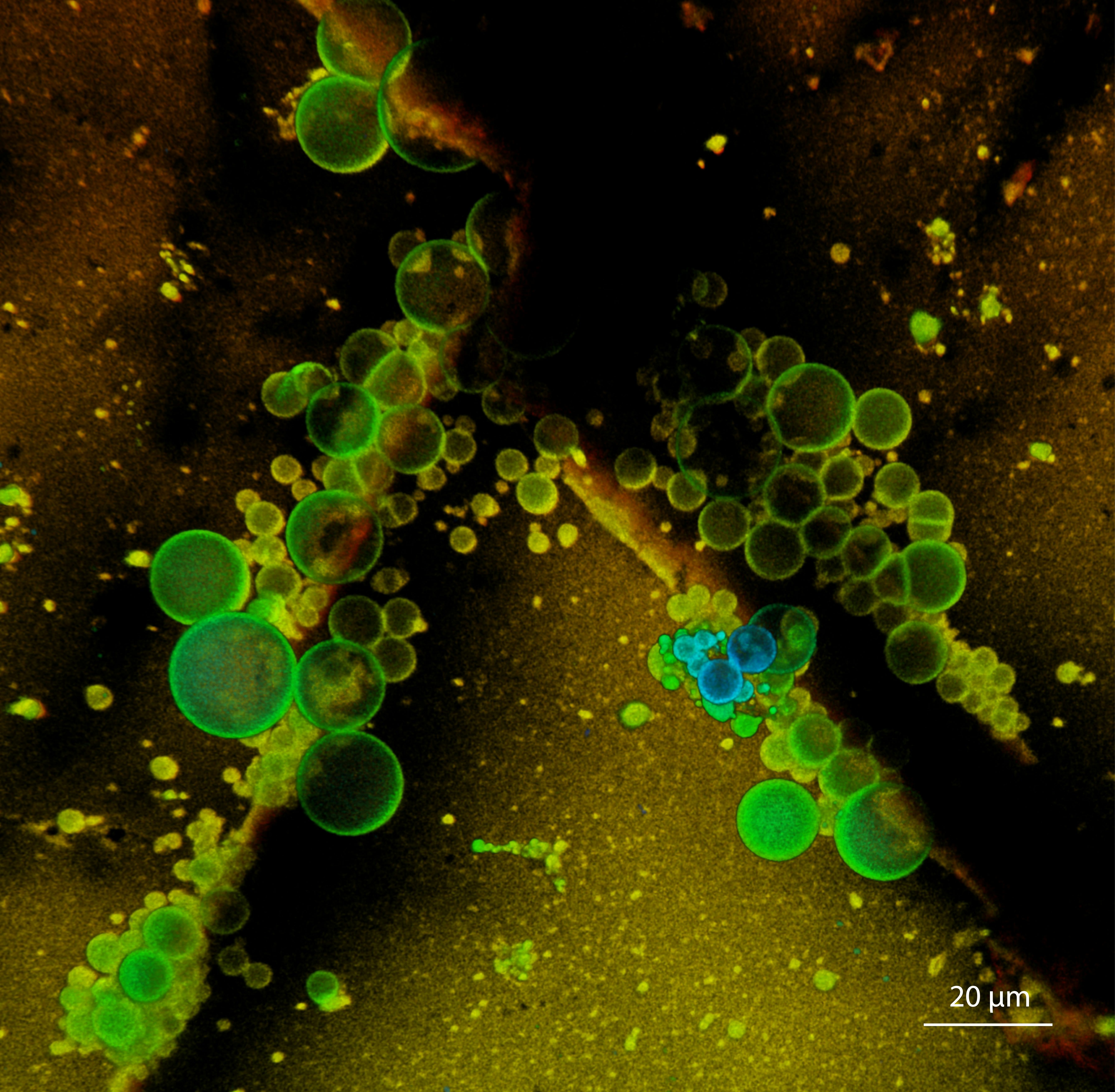 Made of lipids, these spherical clusters would have had a much simpler composition.