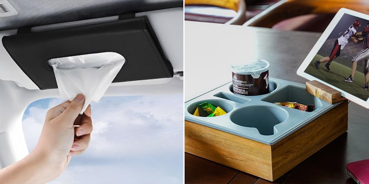 “I’m constantly needing tissues in my car and this is a great way to keep them handy and not rolling around in the back seat,” wrote one shopper, referring to this pair of tissue holders that attach to your vehicle’s sun visor. They’re made from faux leather with a soft velvet lining, and they also come in beige and pink in the listing.