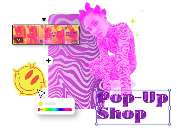 Don’t waste precious design time tediously outlining images — with Adobe Express’s background removal tool, you can change or altogether nix backgrounds with ease and apply the updated image across multiple design assets in seconds. Video creation, meanwhile, becomes drag-and-drop simple; you can swirl together video, artwork, animation, and music with just a few simple swipes, then effortlessly resize the final results for use across different platforms. Whether you’re designing a highly shareable event invite or a new brand graphic that stops people mid-scroll, do it all in one place with just a few clicks.